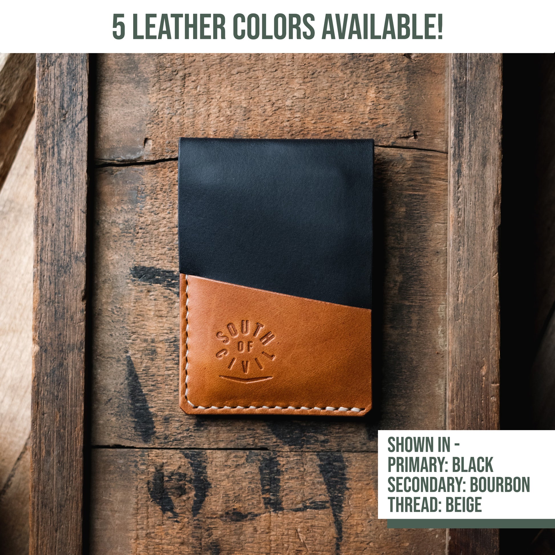 2.)Please be aware that leather colors, tones and finishes vary depending on what section of the hide the wallet is made from. Leather is a natural product, so there may be indications of a life well-lived on your wallet. Bug bites, fat striations, and other "imperfections" add to the character and personality of the wallet.
